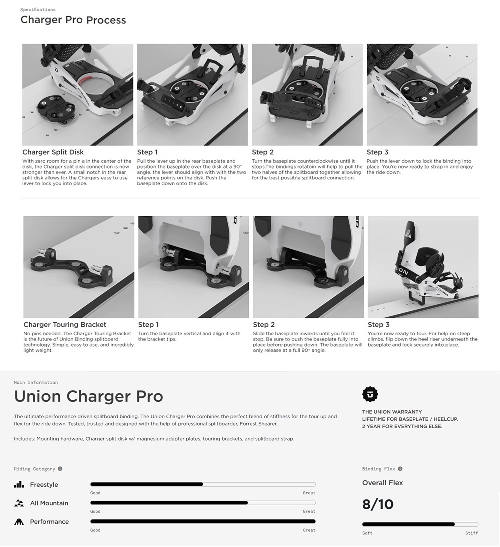 Union Charger Pro je novým přírůstkem do řady Union Expedition. Bezkolíkové vázání s pevnější, lehčí a citlivější verzí s tužší lžičkou a lehčími